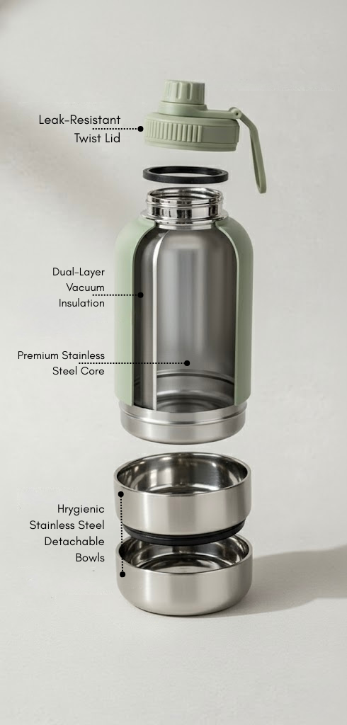 👉 One bottle, two bowls—hydration and feeding made simple wherever your adventures take you.